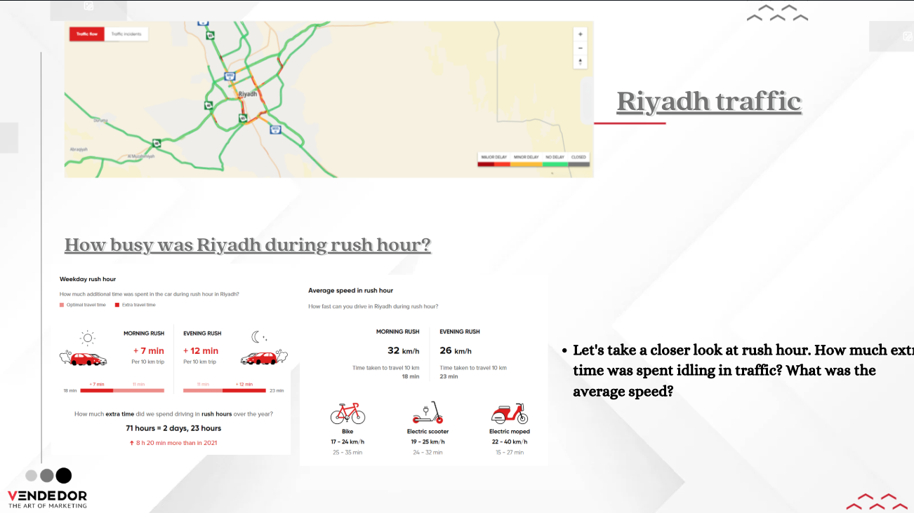 - In-depth Study: Conducted an in-depth visibility and validation study comparing multiple variables: Cars vs. Scooters vs. Electric Scooters, Traffic vs. No Traffic Zones, Accessibility Levels across Riyadh
